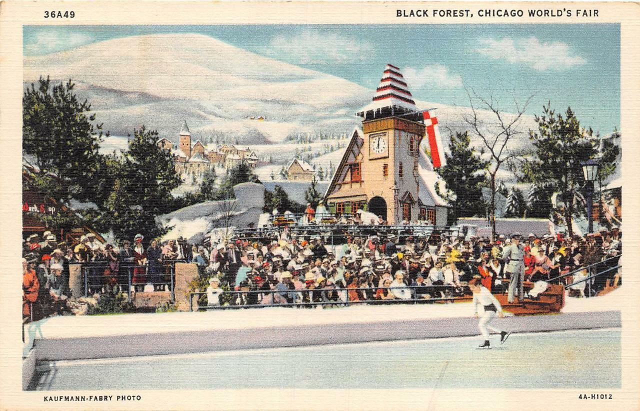 Condition: Please see scans & description for condition report. Black forest chicago world's fair exposition postcard 1933 very attractive and historic postcard showing view of black forest exhibit and boy ice ska ... Read More
