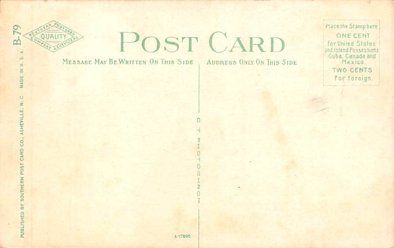Black Mountain Black Mountain, North Carolina NC Postcard - Unused Grade: 2 stains on back side Size: R - Regular Size Postcard - approximately 3 1/2 inch x 5 1/2 inch (9 CM x 14 CM) Grading Scale: Grade 1 = Pe ... Read More