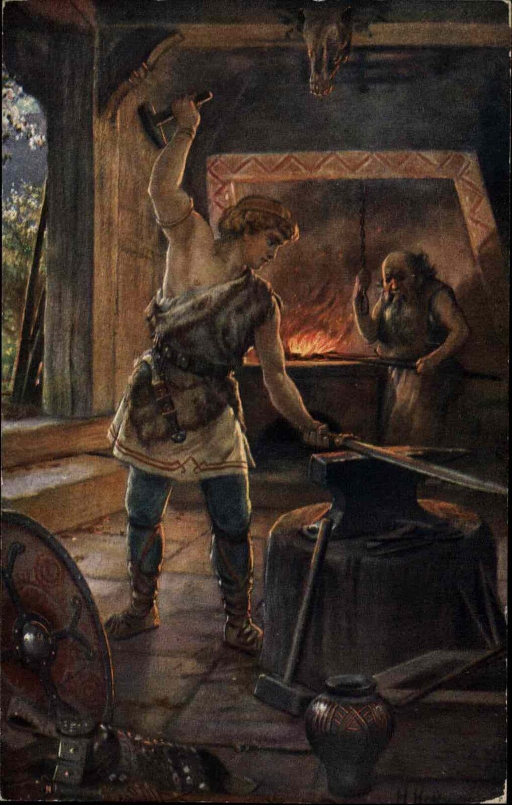 Blacksmith Anvil Hammer Forge etc SIEGFRIED Opera Art Ser 127 #3724 Postcard
