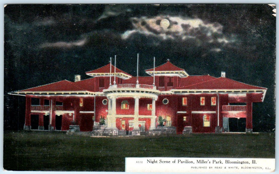 BLOOMINGTON, Illinois IL Miller's Park PAVILION Night Scene c1910s Postcard