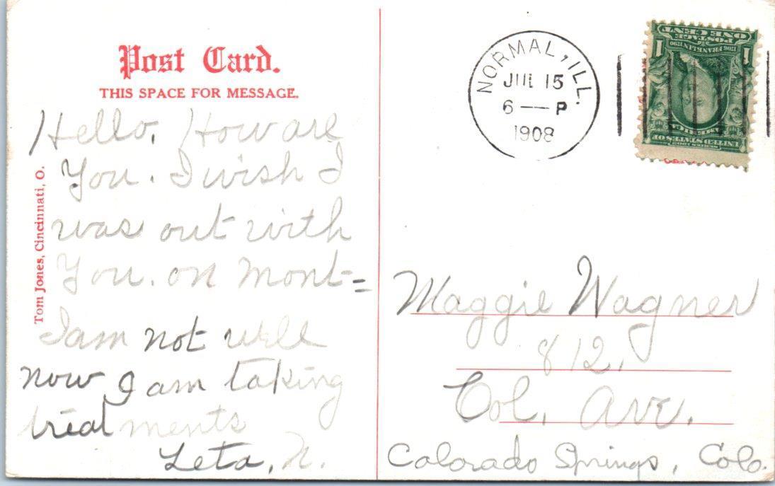 BLOOMINGTON, Illinois IL WITHERS PUBLIC LIBRARY 1908 Postcard