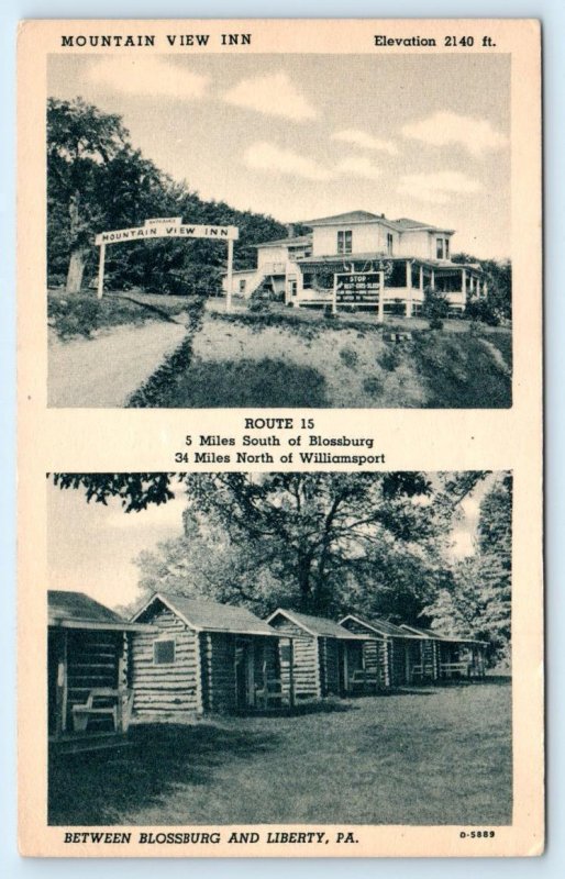 BLOSS MOUNTAIN, Pennsylvania PA ~ Roadside MOUNTAIN VIEW INN c1940s Postcard