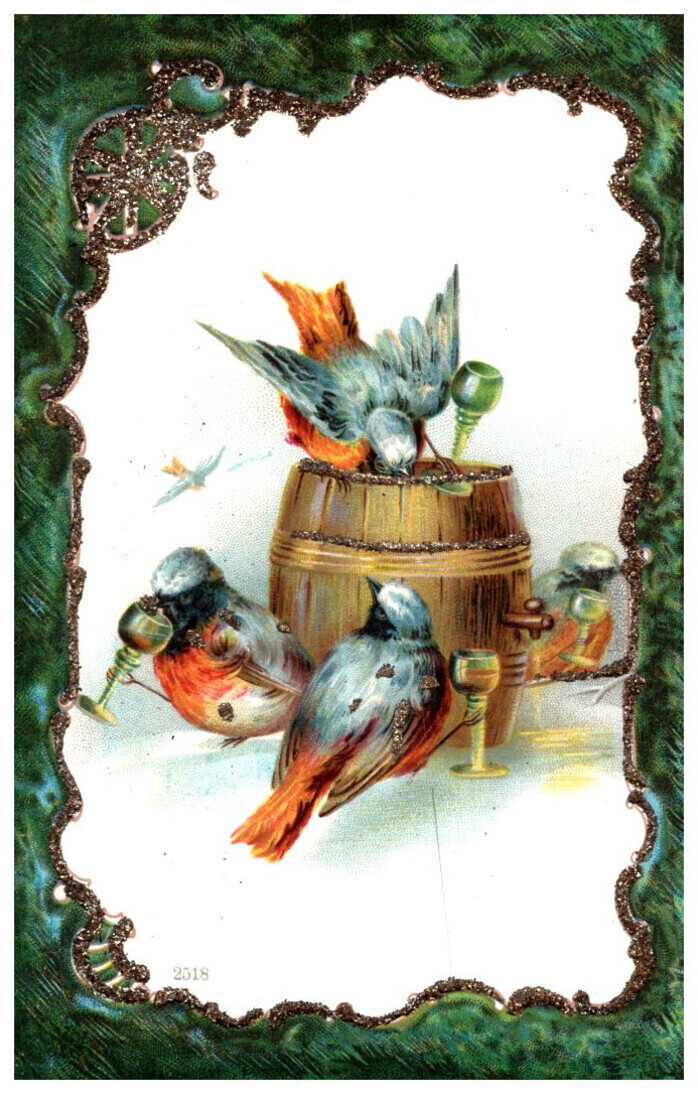 Blue birds drinking Beer from Keg , glitter