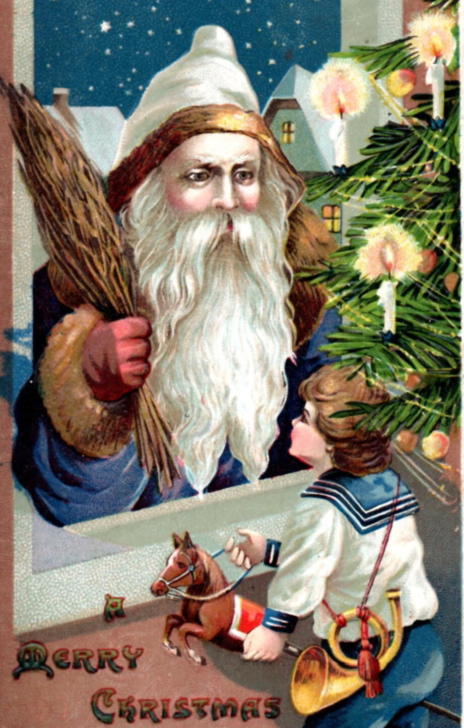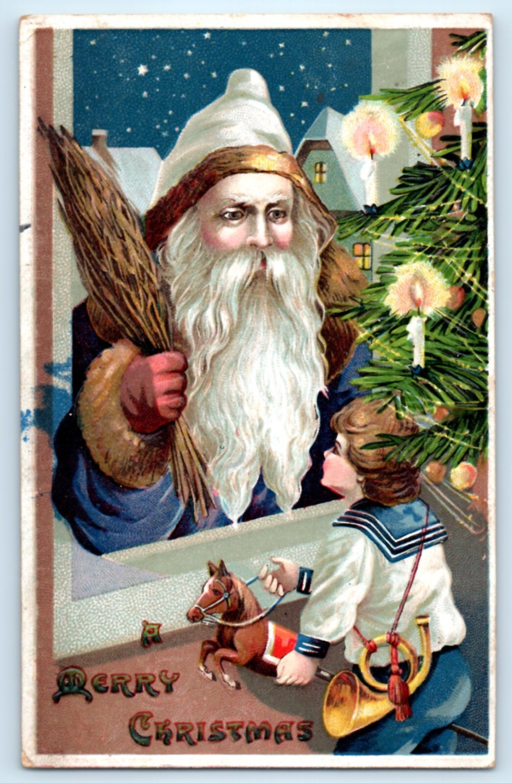 Blue Robe Santa Claus Christmas Postcard