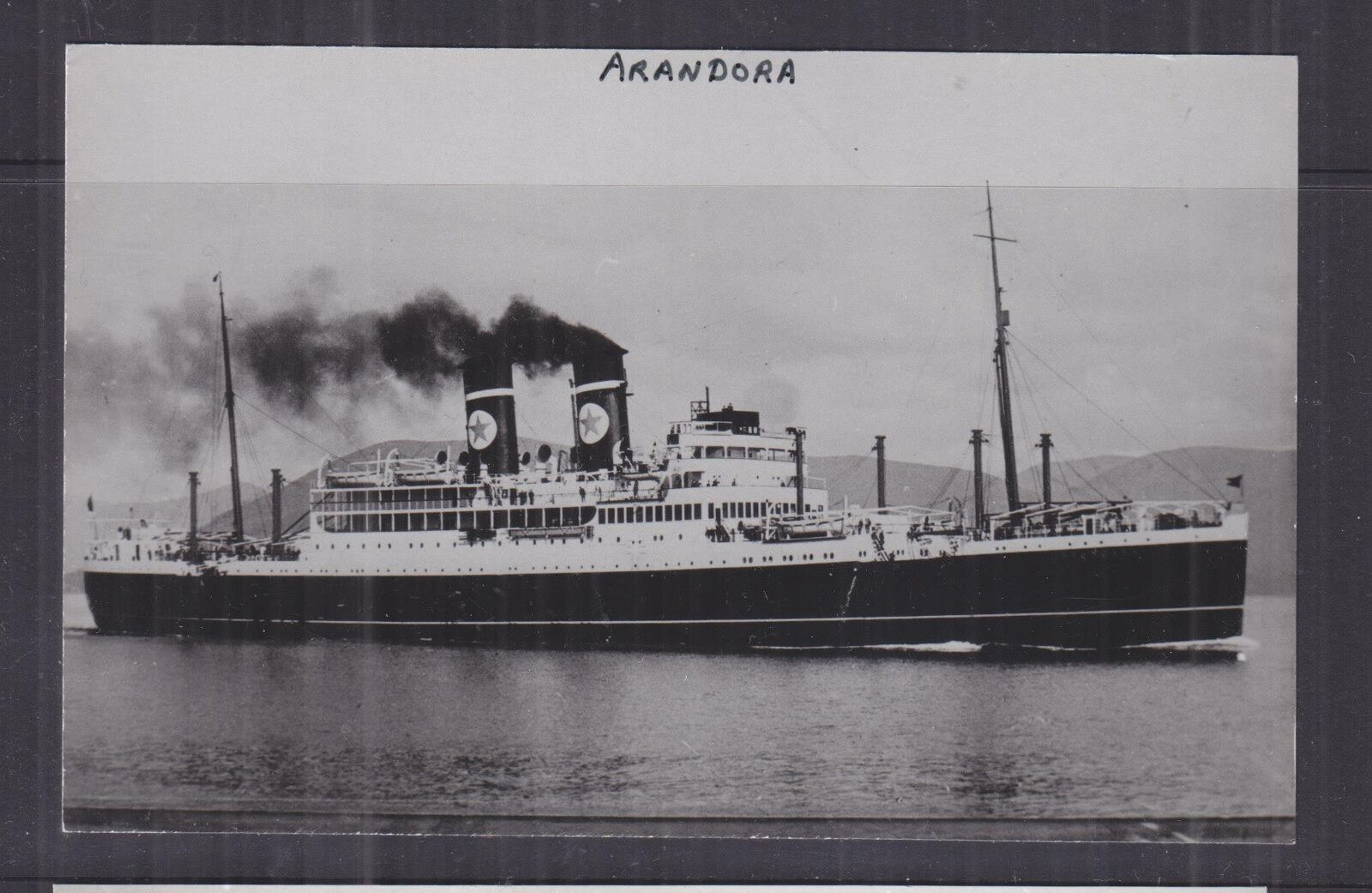 BLUE STAR LINE " ARANDORA STAR ", 1927 REPRINT, plain reverse. BLUE STAR LINE " ARANDORA STAR ", 1927 REPRINT, plain reverse. Description BLUE STAR LINE " ARANDORA STAR ", 1927 REPRINT, plain reverse. Postage & Packing North & South America, Europe, Africa, Middle East, US$ 3.00 New Zealand & South East Asia US$ 2.50 Australia US$ 2.00. Registered mail is $13.00 worldwide, Australia US$ 4.00 No extra for combined purchases 3092 Click images to enlarge Pictures sell!Auctiva offers Free Image Hosting and Editing.300+ Listing Templates!Auctiva gets you noticed!The complete Hip Selling Solution.Track Page Views WithAuctiva's Counter