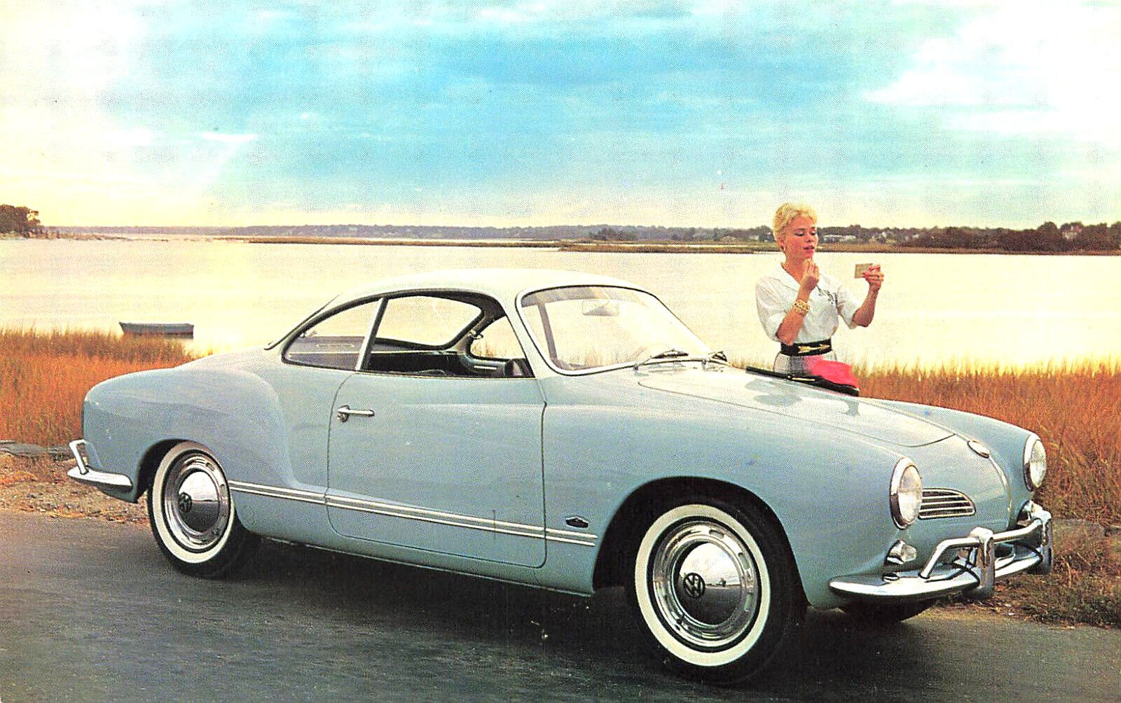Blue Volkswagen Two Door Karmann Ghia, Postcard.