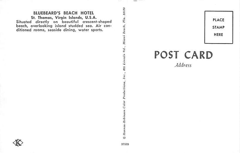 Bluebeards Beach Hotel Saint Thomas Virgin Islands Postcard Postcard, Grade: 1 Size: Regular Size Postcard - approximately 3 1/2 inch x 5 1/2 inch (9 CM x 14 CM) Grading Scale: Grade 1 = Perfect corners Grade 2 ... Read More
