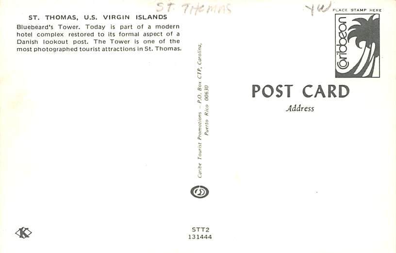 Bluebeards Tower Saint Thomas Virgin Islands Postcard Postcard, Grade: 1 Size: Regular Size Postcard - approximately 3 1/2 inch x 5 1/2 inch (9 CM x 14 CM) Grading Scale: Grade 1 = Perfect corners Grade 2 = Ver ... Read More
