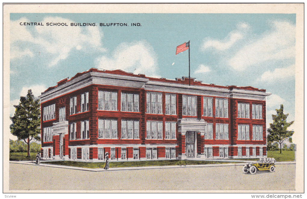 BLUFFTON, Indiana, 1900-1910's; Central School Building :: Postcard, 3.5" x 5.5", Litho, EX