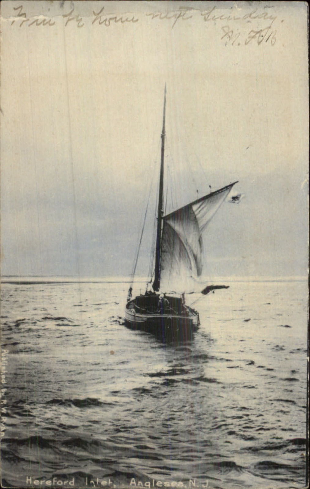 Boat at Hereford Inlet Anglesea NJ c1905 Postcard
