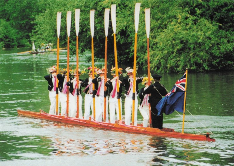 Boat Procession Union Jack Flag Eton College Cambridge Postcard