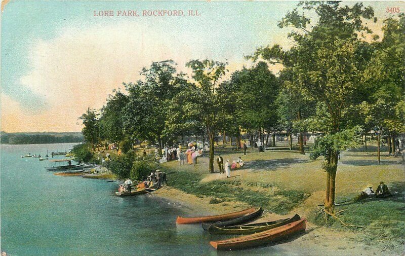 Boats Canoes C-1910 Lore Park Rockford Illinois Postcard Bossleman 9590
