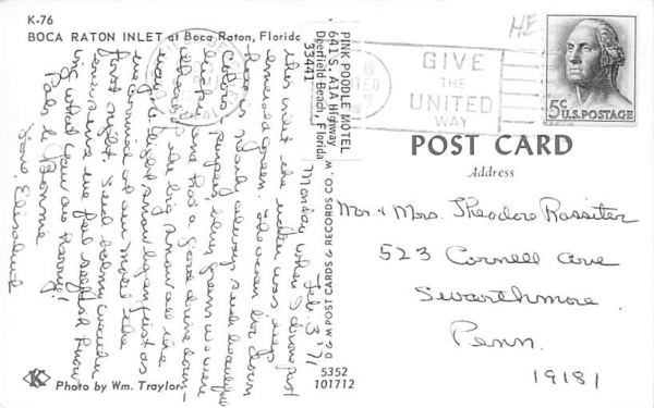 Boca Raton Inlet Florida Postcard - postal used unknown Grade: 1 Size: R - Regular size: Approx 3 1/2 X 5 1/2 inch (9 cm X 14 cm) Grading Scale: Grade 1 = Perfect corners Grade 2 = Very Minimal corner wear, no ... Read More