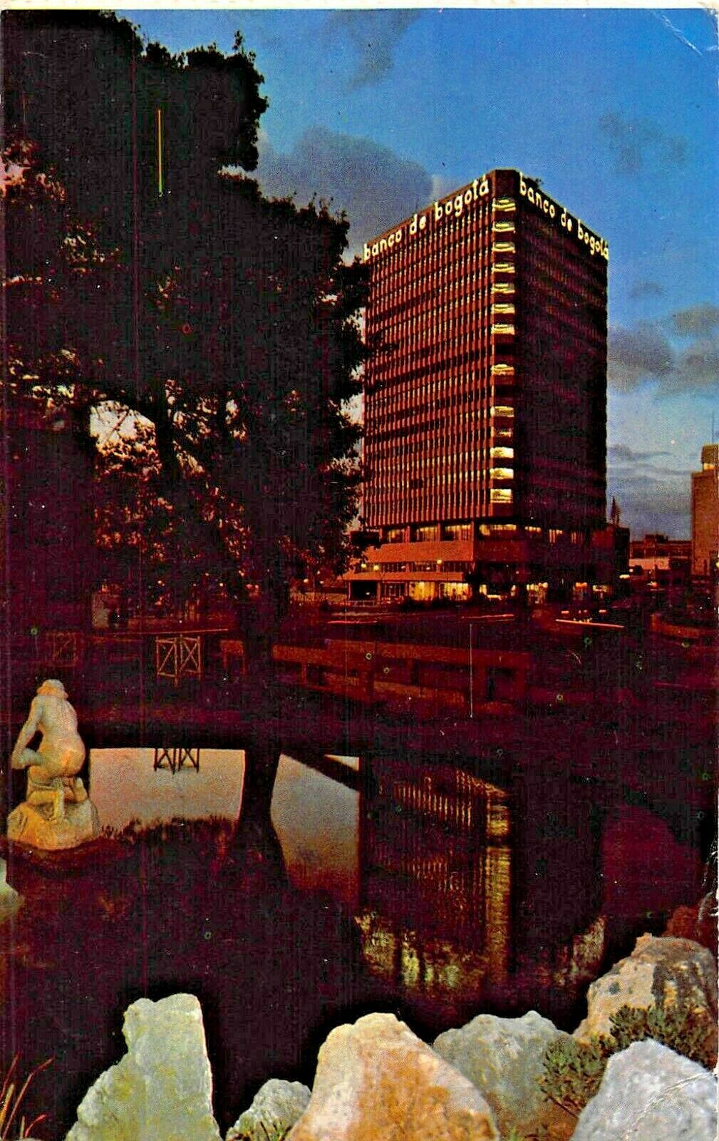 BOGOTA COLOMBIA~EDIFICIO BANCO de BOGOTA-VISTA NOCTURNA POSTCARD