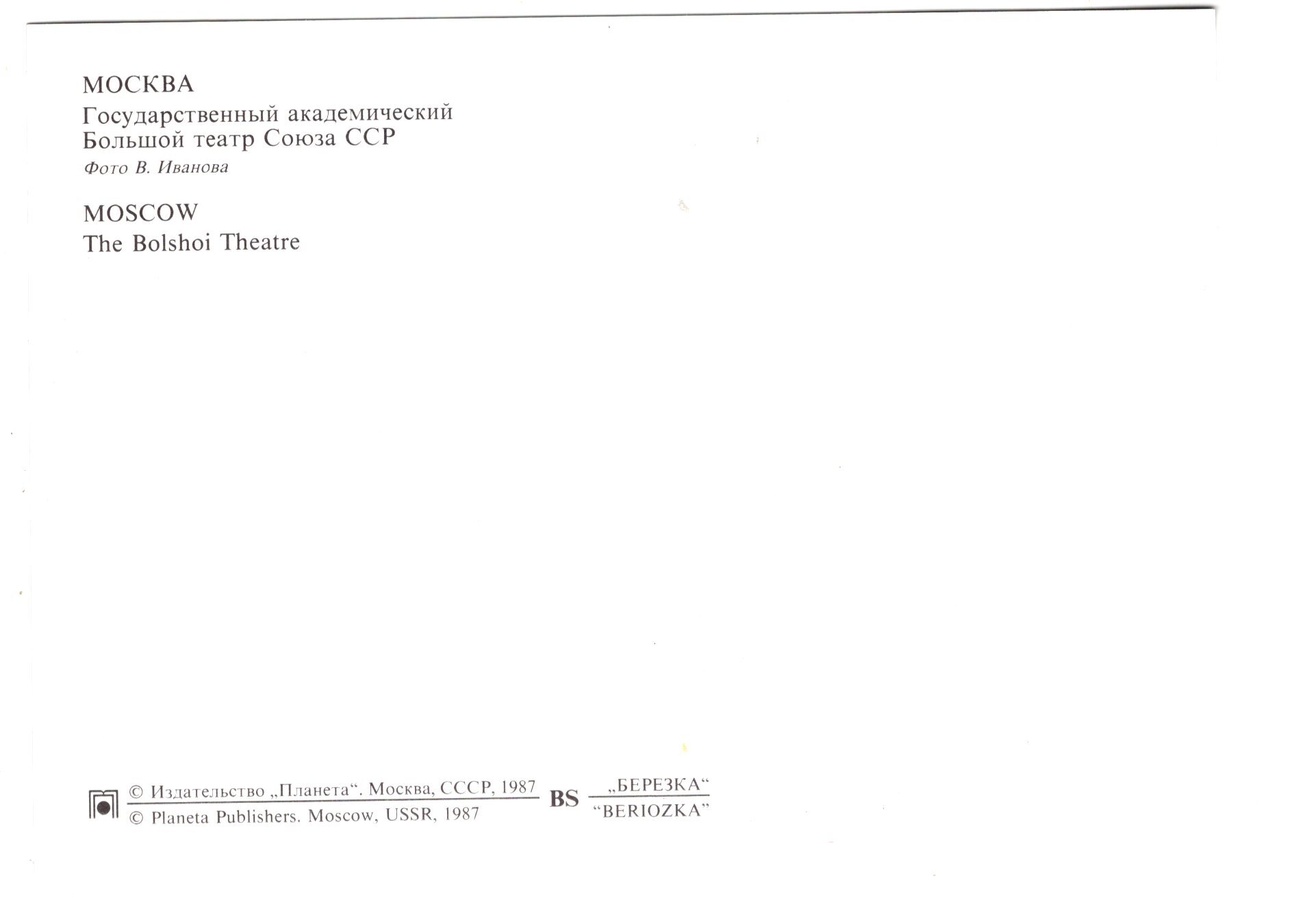 Bolshoi Theatre, Moscow, USSR