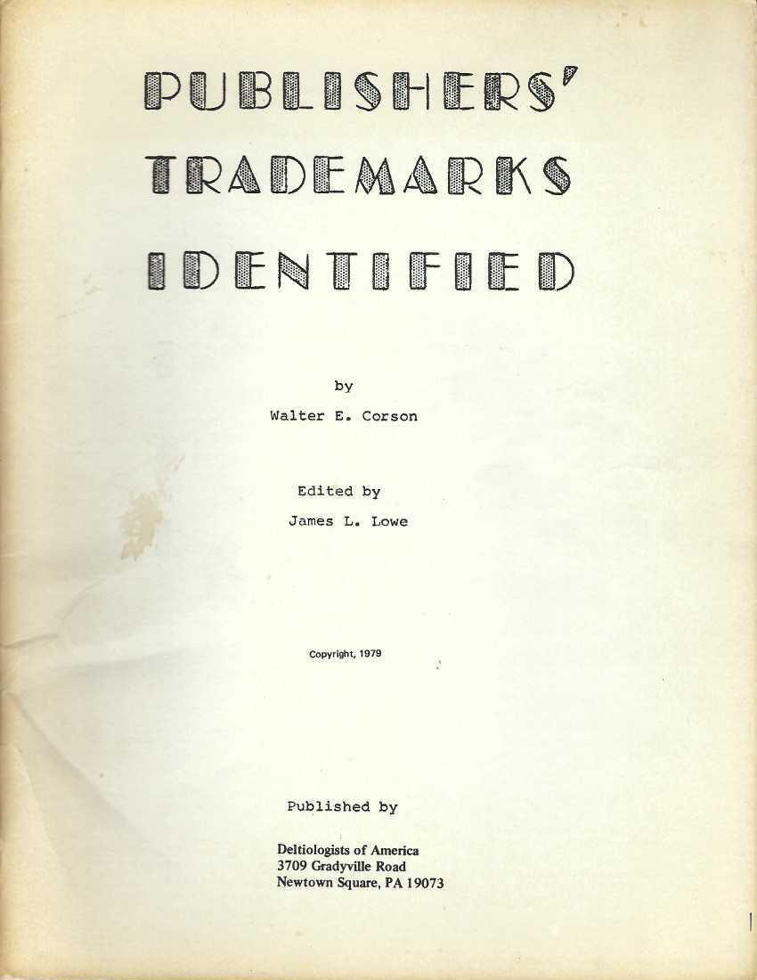 BOOK- Publishers' Trademarks Identified. Deltiology
