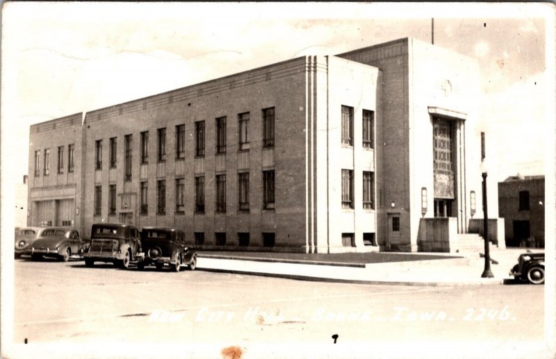 Boone Iowa RPPC Postcard c1940s New City Hall Building JD26