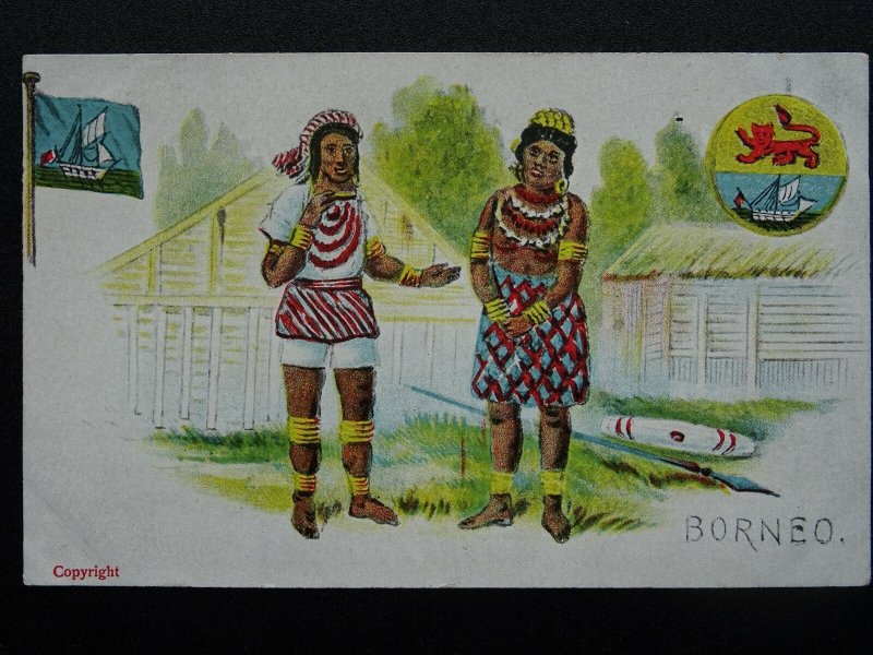 BORNEO People Dressed in National Costume with Flag c1906 Postcard by G.D.& D.