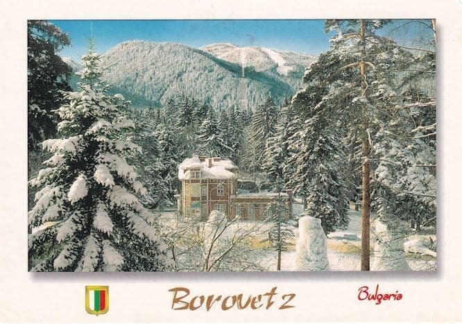 Ts200 Beautiful 1990s postcard featuring Borovets which is a town on the northern slopes of Bulgarias Rila Mountains. Its the gateway to numerous ski and snowboard runs on Rila National Parks craggy Musala Ridge. Cy ... Read More