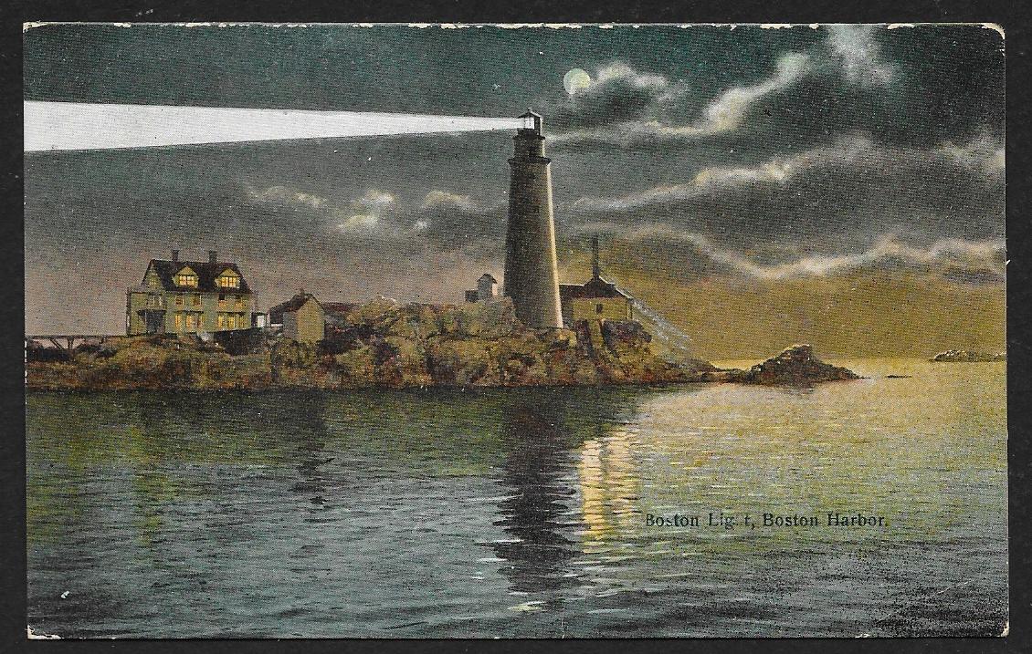 Boston Lighthouse At Night Boston Harbor Massachusetts Used c1912