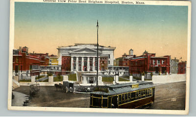 Boston MA Hospital Trolley St Scene c1910 Postcard