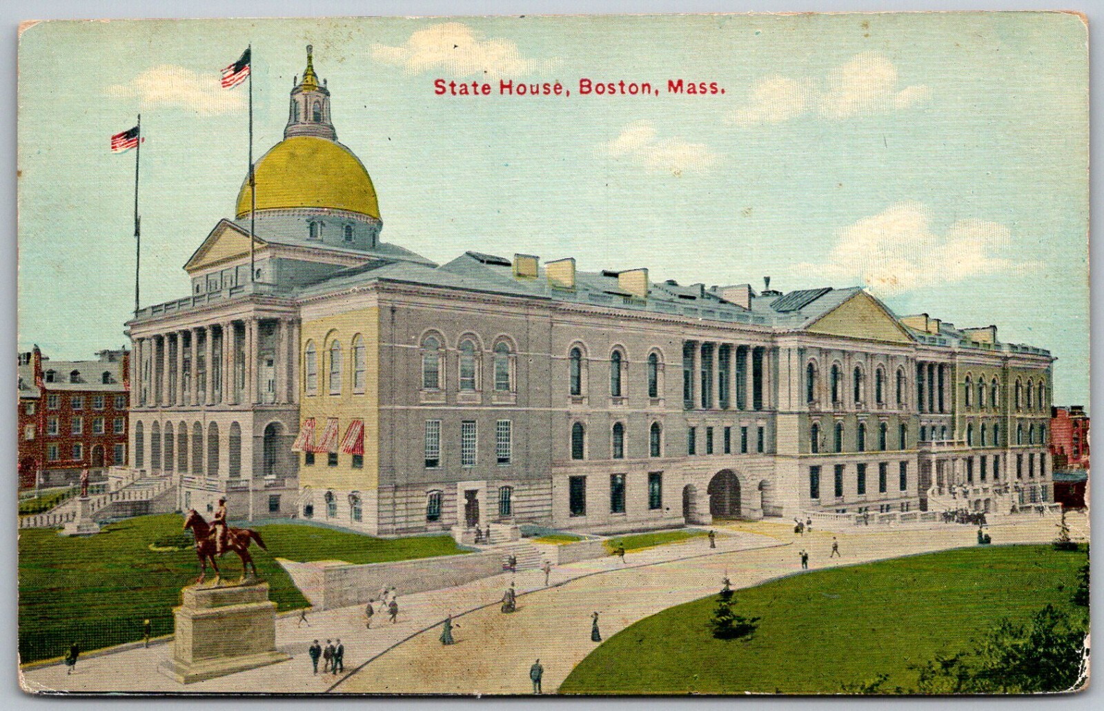 Boston Massachusetts c1907 Postcard State House Flags