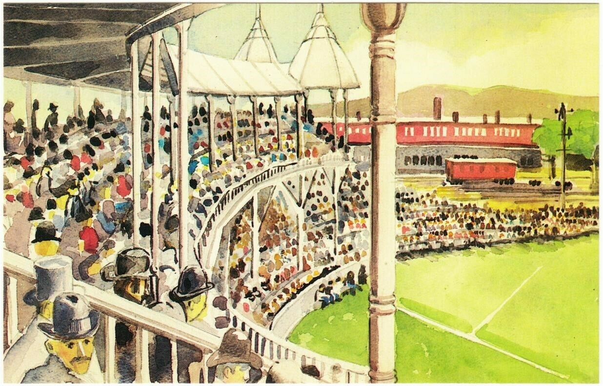 A modern postcard showing a painting of Boston's South End Grounds, which was destroyed by fire in 1894. This postcard was published by Gordon Tindall as part of the "Great American Ballparks" series in the 1980s o ... Read More