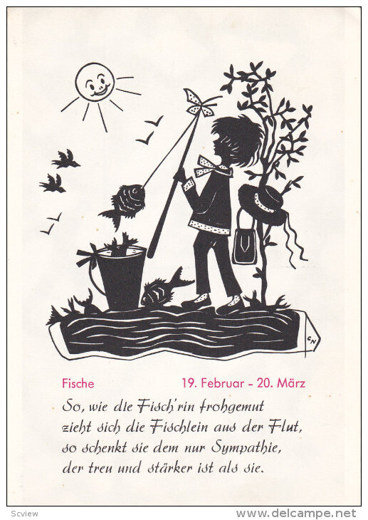 Boy Fishing , 30-40s :: Postcard ,4 by 6" , Litho , EX