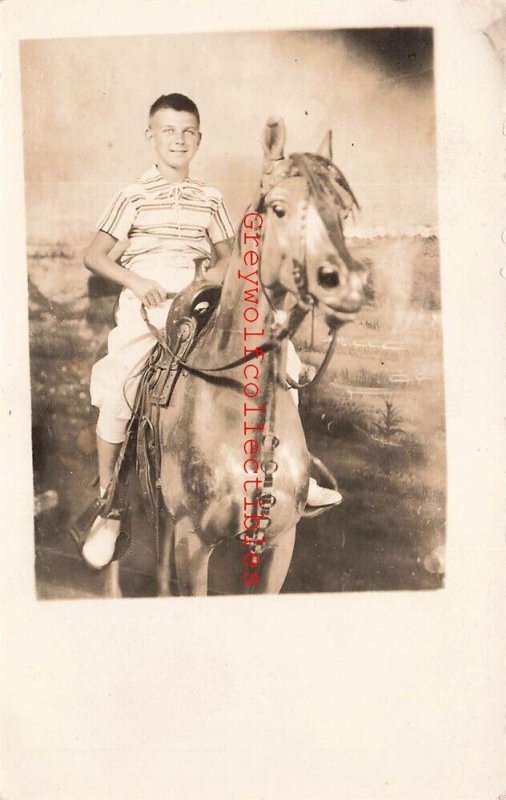 Early Real Photo Postcard Boy on Horse Postmark: None Image: Sharp and Clear Corners: Light wear Faults/Other: