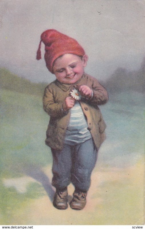 Boy Picking Pedals off of a daisy flower , 1921 :: Postcard, 3.5 by 5.5 , Litho