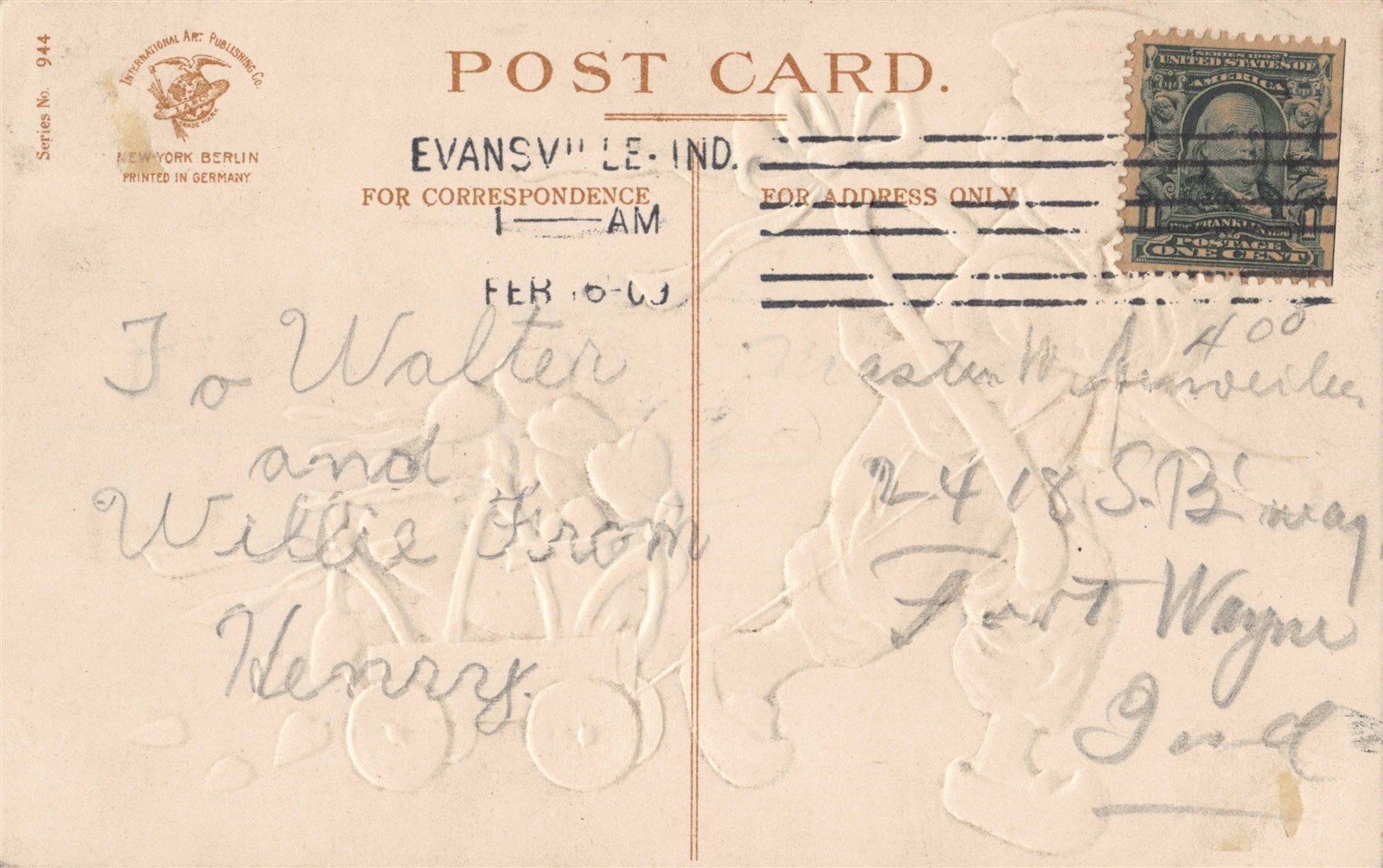 boy wagon wishbone E Clapsaddle Vintage valentine postcard 26val06