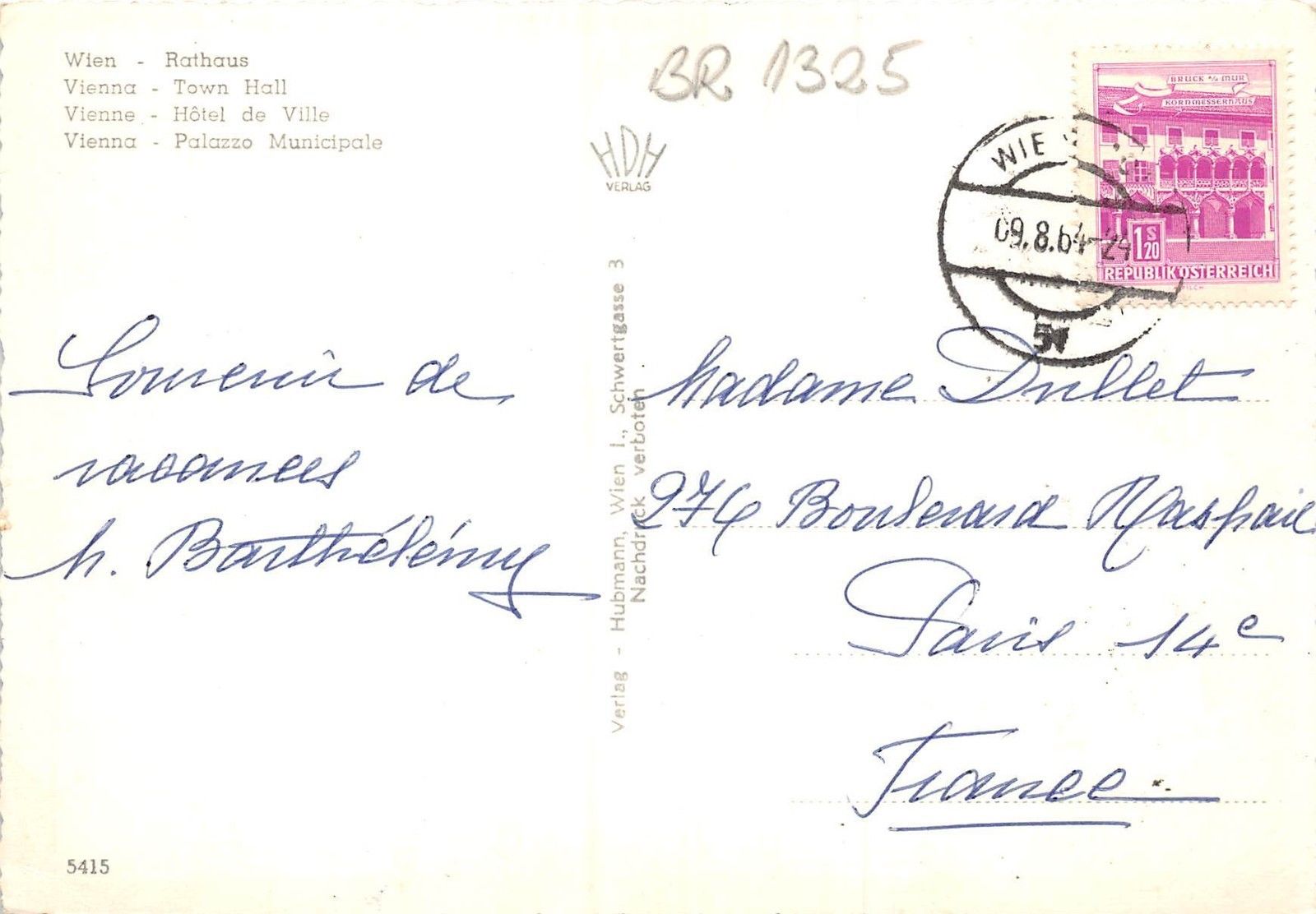 BR1325 Austria Vienna Town Hall