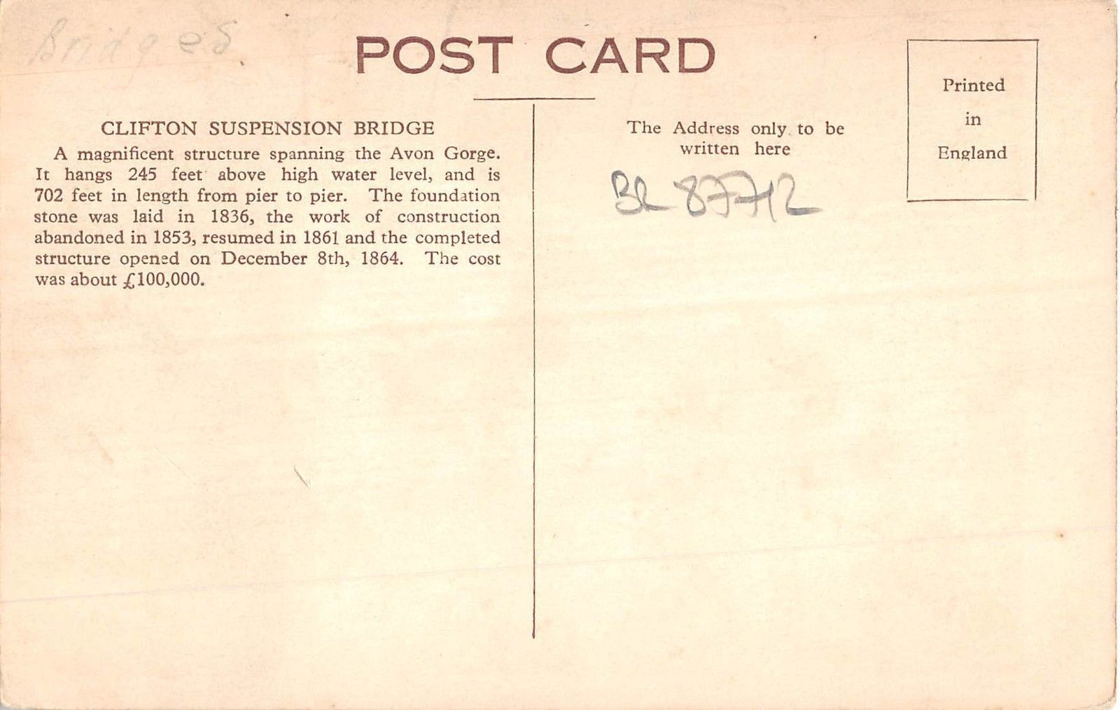 BR87712 clifton suspension bridge uk