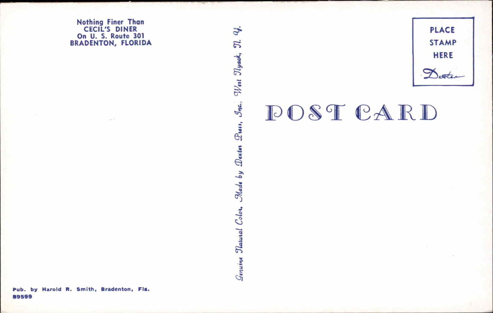 Bradenton FL Cecil's Roadside Diner Route 301 Postcard