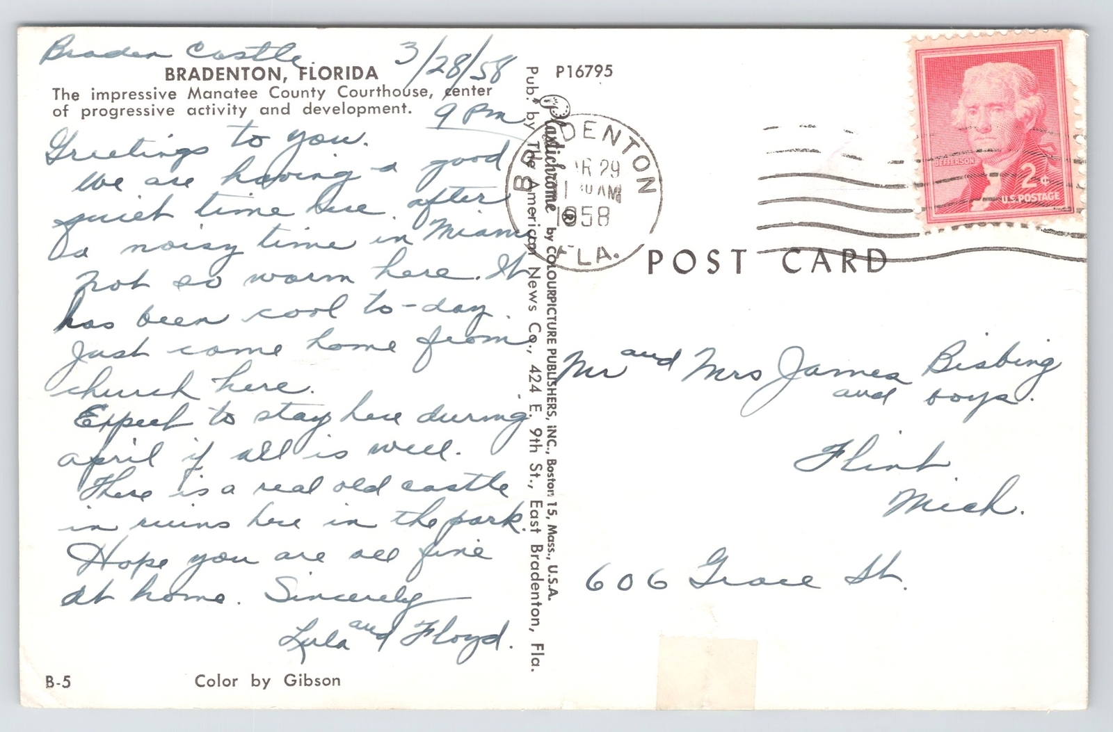 Bradenton Florida~Air View Manatee County Courthouse~Vintage Postcard