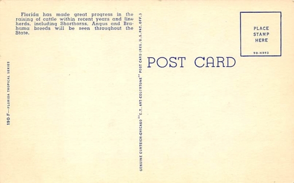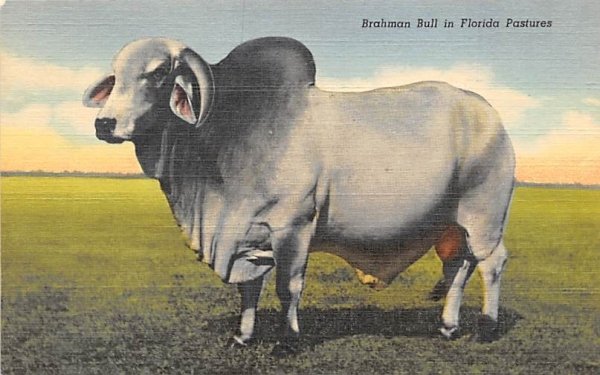 Brahman Bull in Florida Pastures Postcard , Grade: 1 Size: Regular Size Postcard - approximately 3 1/2 inch x 5 1/2 inch (9 CM x 14 CM) Grading Scale: Grade 1 = Perfect corners Grade 2 = Very Minimal corner wea ... Read More