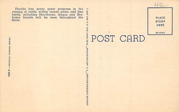 Brahman Bull in Florida Pastures Postcard , Grade: 1 Size: Regular Size Postcard - approximately 3 1/2 inch x 5 1/2 inch (9 CM x 14 CM) Grading Scale: Grade 1 = Perfect corners Grade 2 = Very Minimal corner wea ... Read More