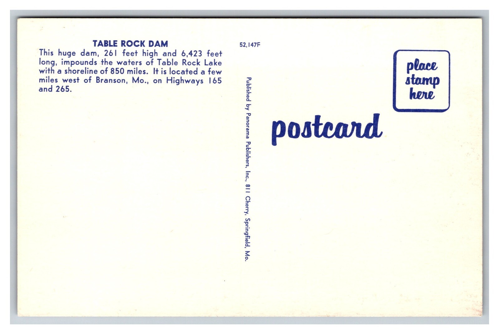 Condition: Unmailed, Showing Wear From Handling. Reasonable Offers Always Considered. Branson Missouri Table Rock Dam Postcard
