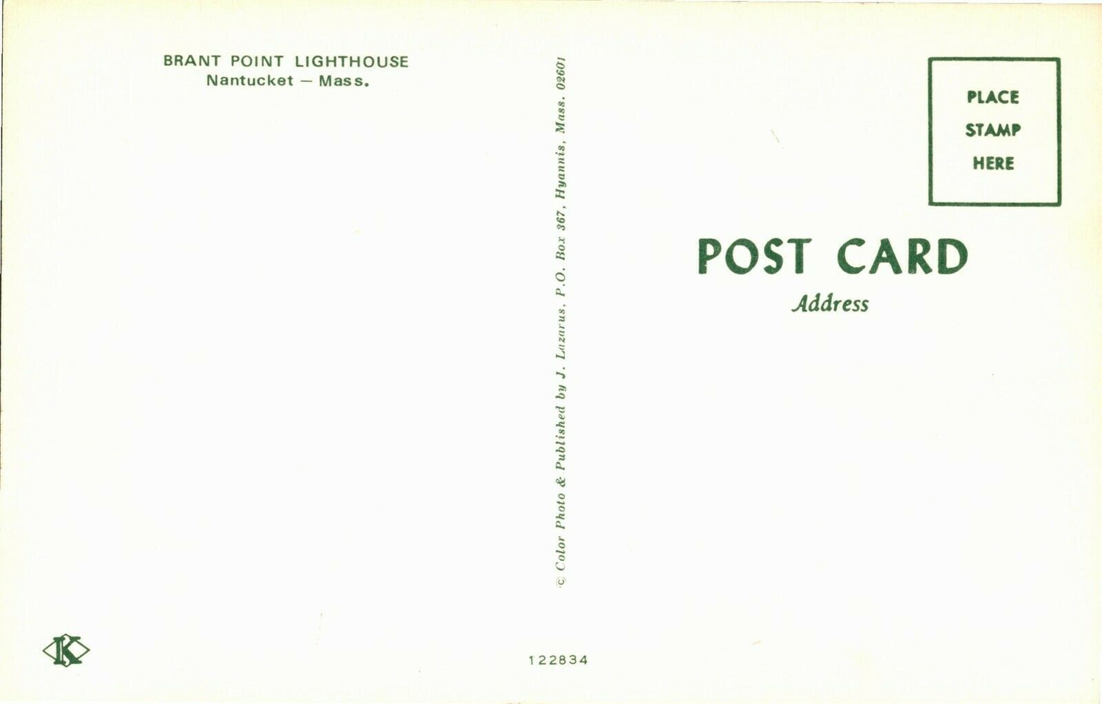 Brant Point Lighthouse, Nantucket MA Vintage Postcard H13