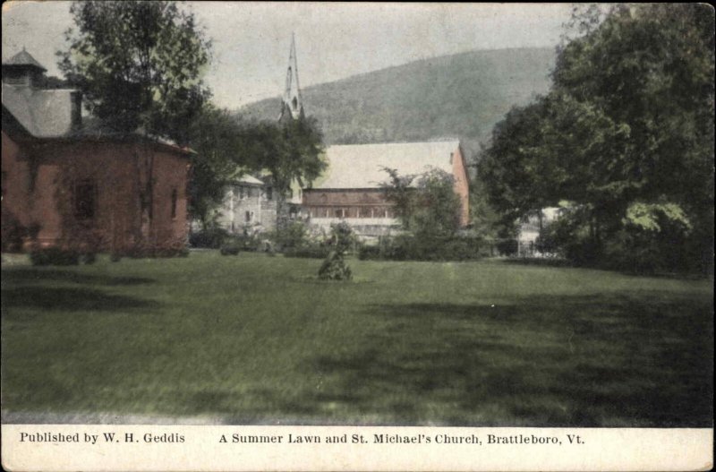 Brattleboro Vermont St Michaels Church Summer Lawn c1900-20s Vintage Postcard