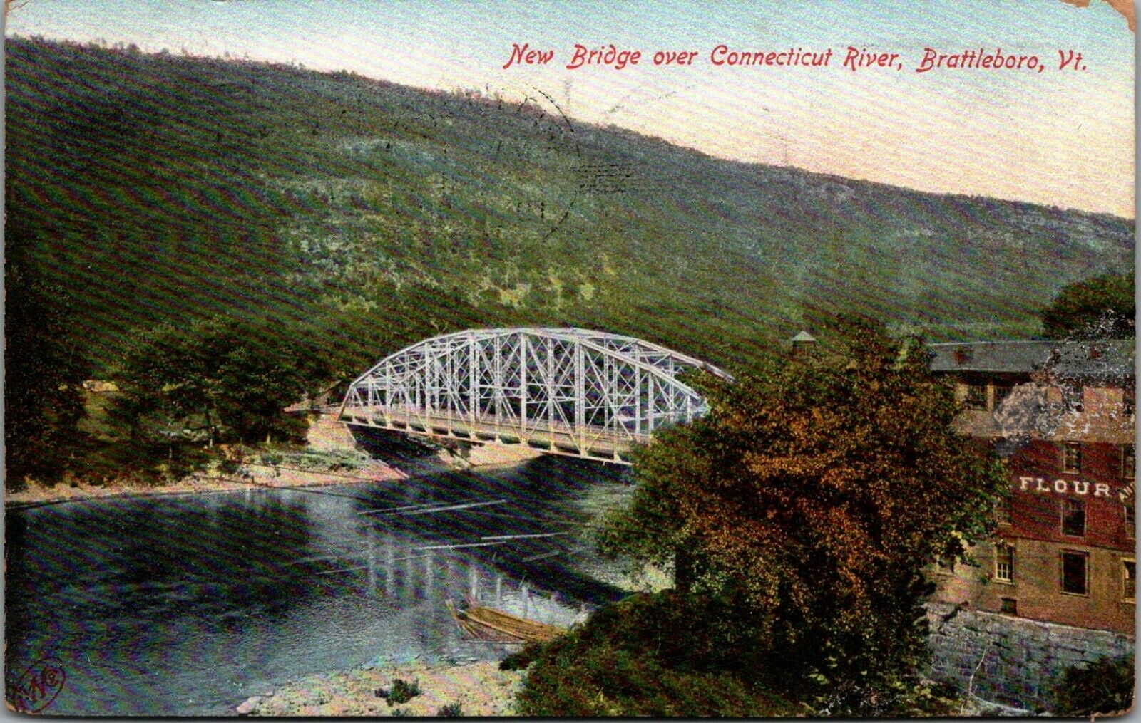 Brattleboro Vermont~New Bridge Over Connecticut River~Flour Mill~1908 Postcard