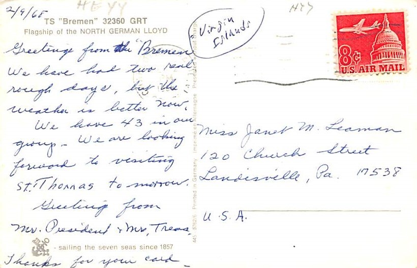 Bremen North German Lloyd Ship Postcard ,
