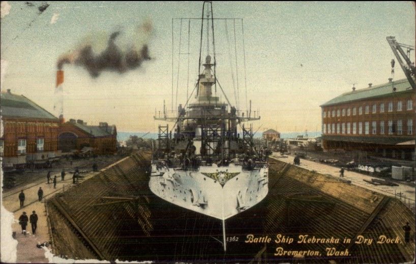 Bremerton WA Battleship Nebraska Dry Dock c1910 Postcard