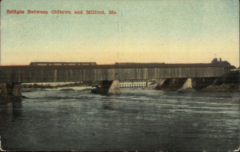 Bridge Between Oldtown & Milford ME c1910 Postcard