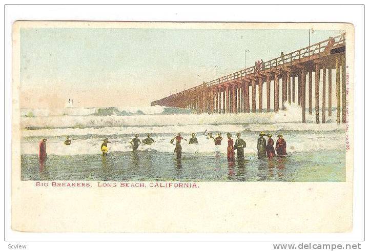 Bridge, Big Breakers, Long Beach, California, 1900-1910s :: Antique (Vintage) Original Postcard, Standard Size (3.5 by 5.5), Litho, VG+, Slight CW, WOB.