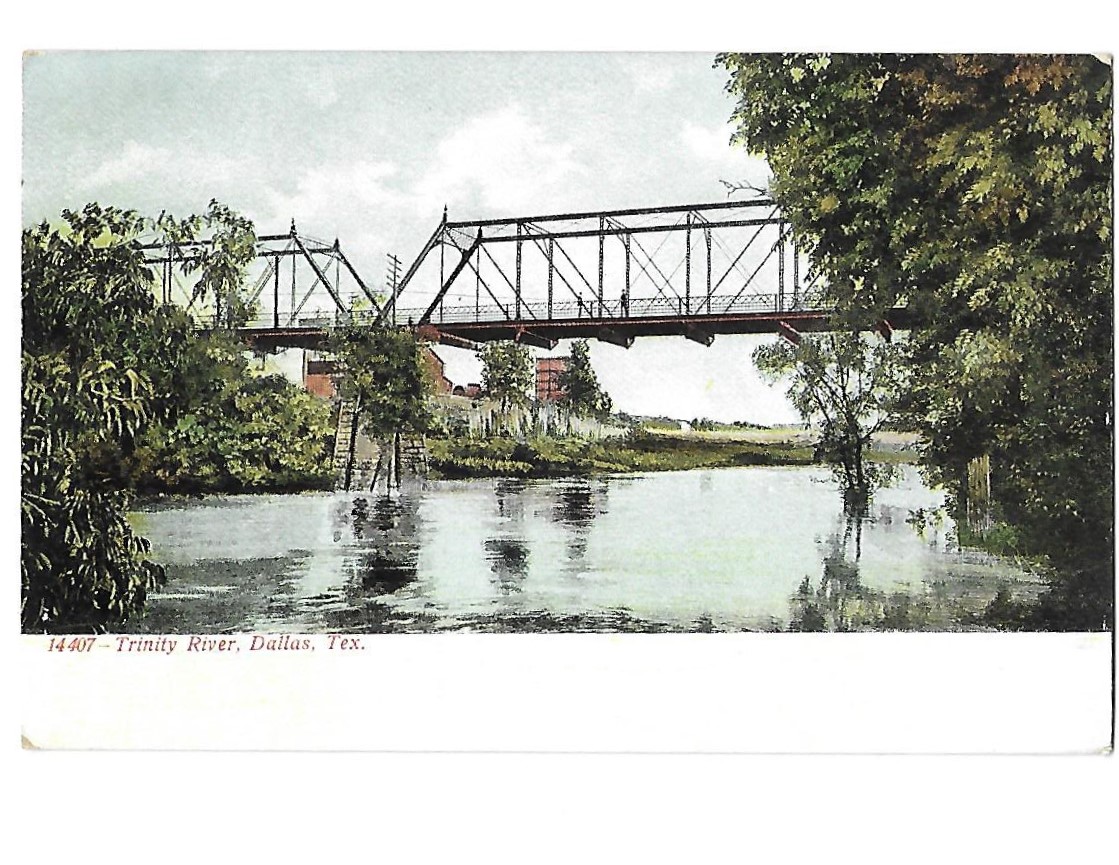 Printed in Germany, Trinity River Dallas Texas. Building and stairs visible in background. Corner wear. Message written in ink on back side, no stamp.Seller Information