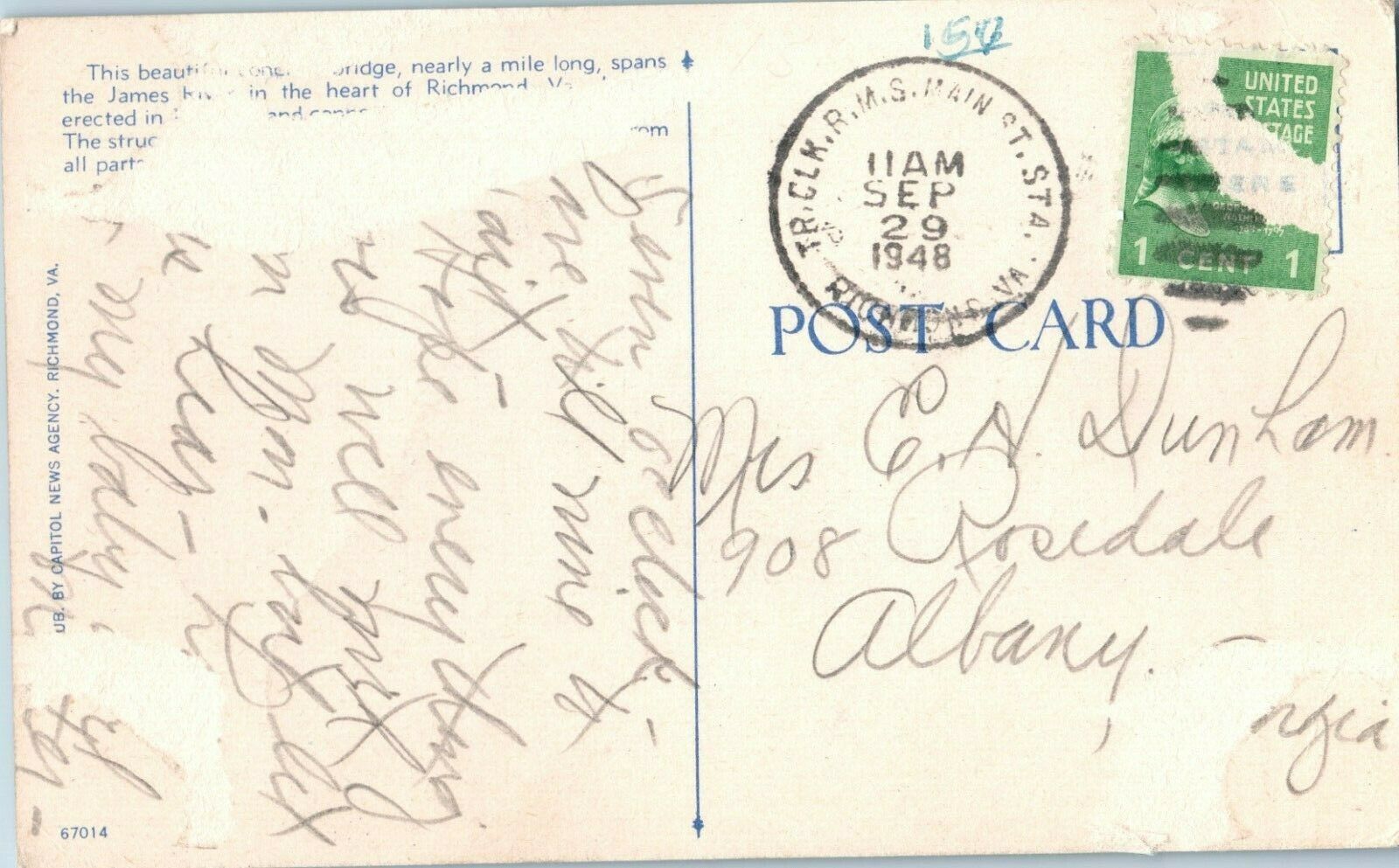 Bridges Postcard Robert E Lee Bridge Richmond Virginia Posted 1948