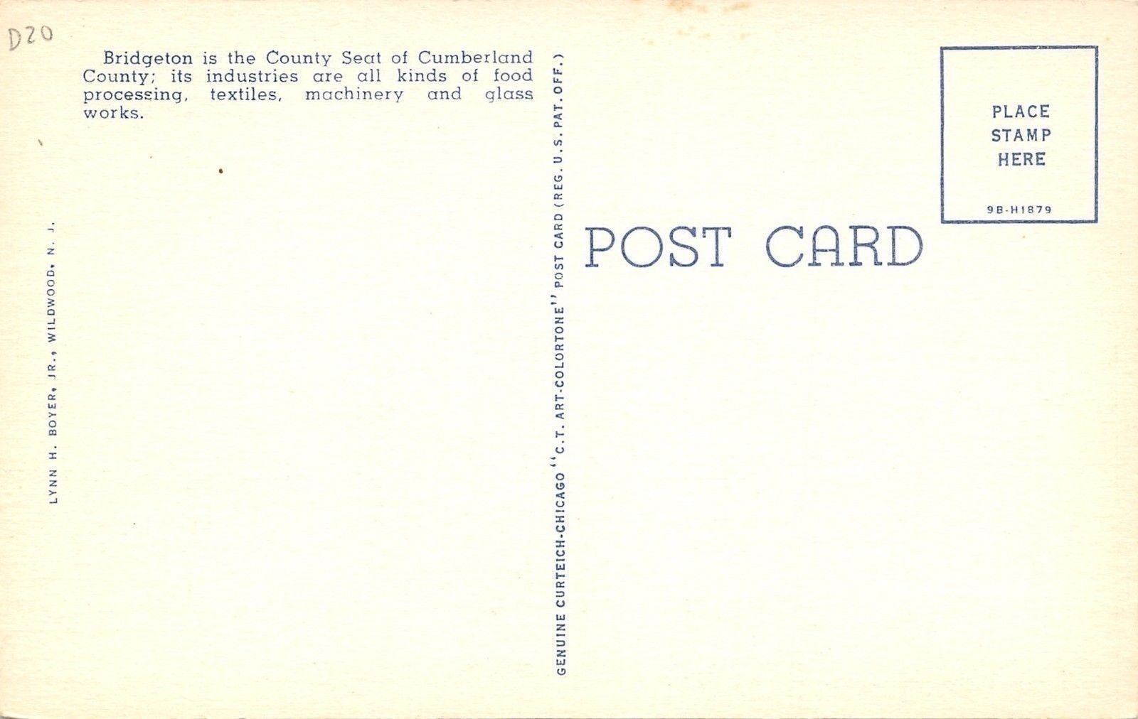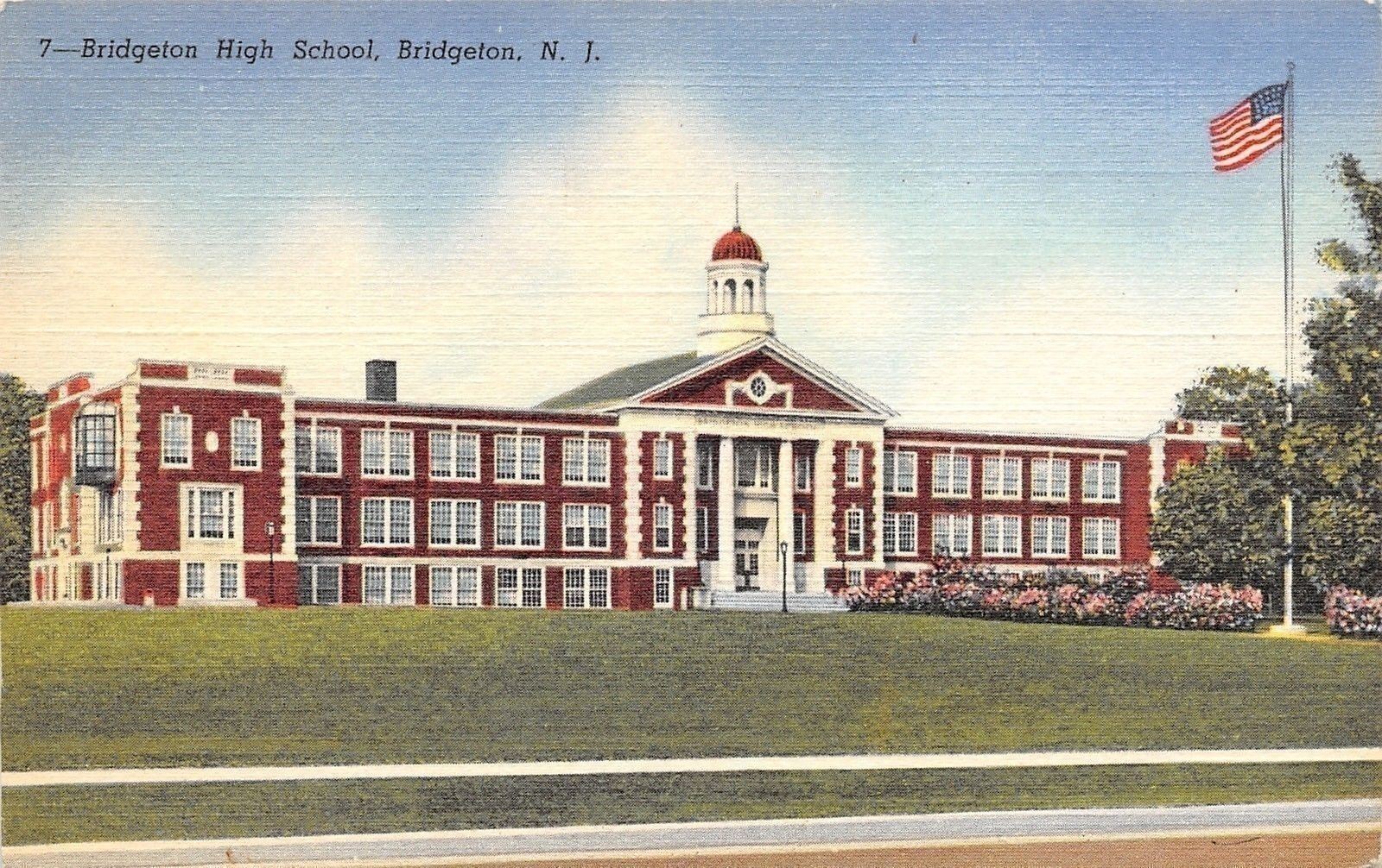 Bridgeton New Jersey~High School~1949 Linen Postcard