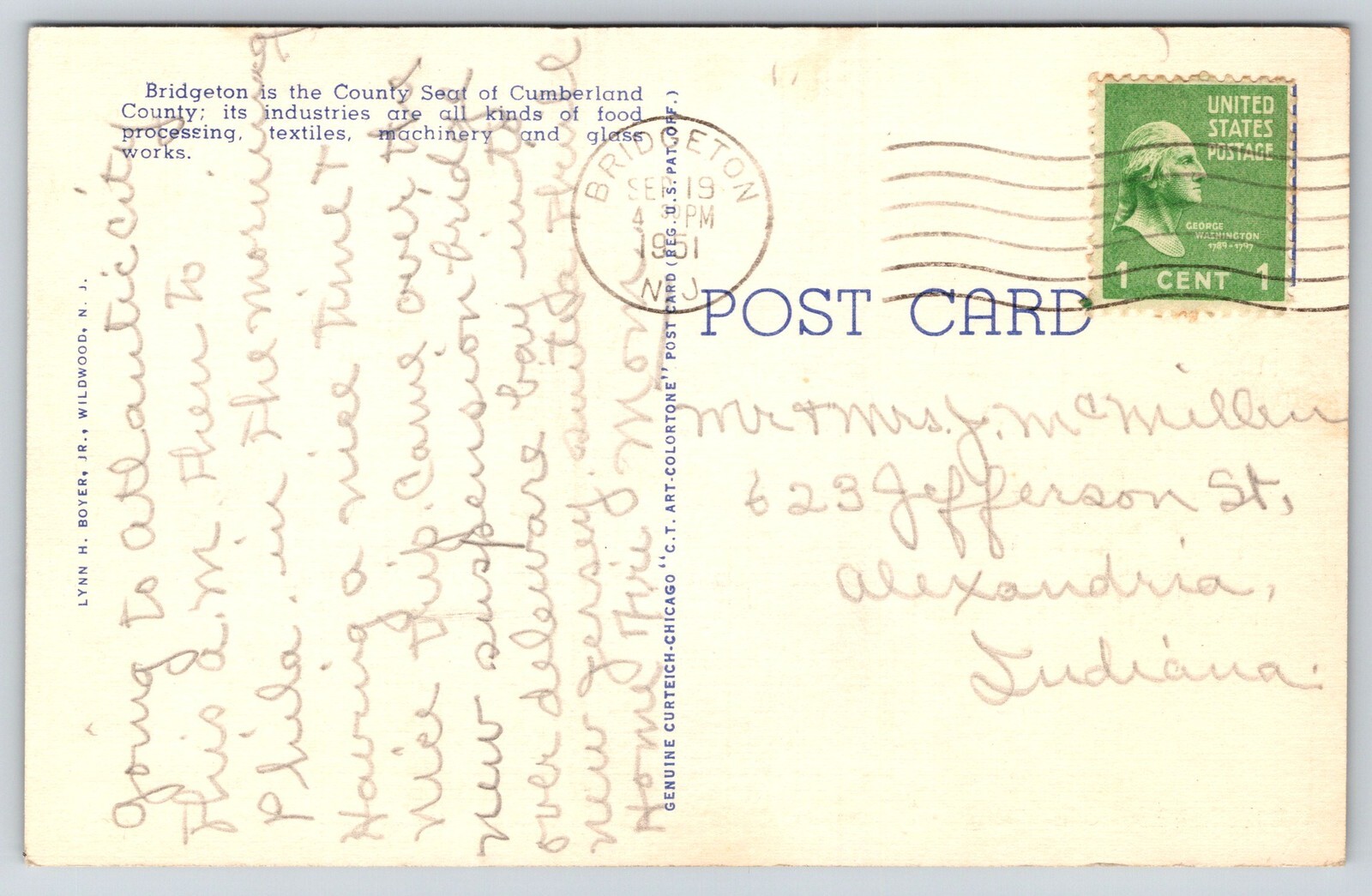 Bridgeton New Jersey~High School~Neoclassical~Cupola~Flag~Linen 1951 Postcard