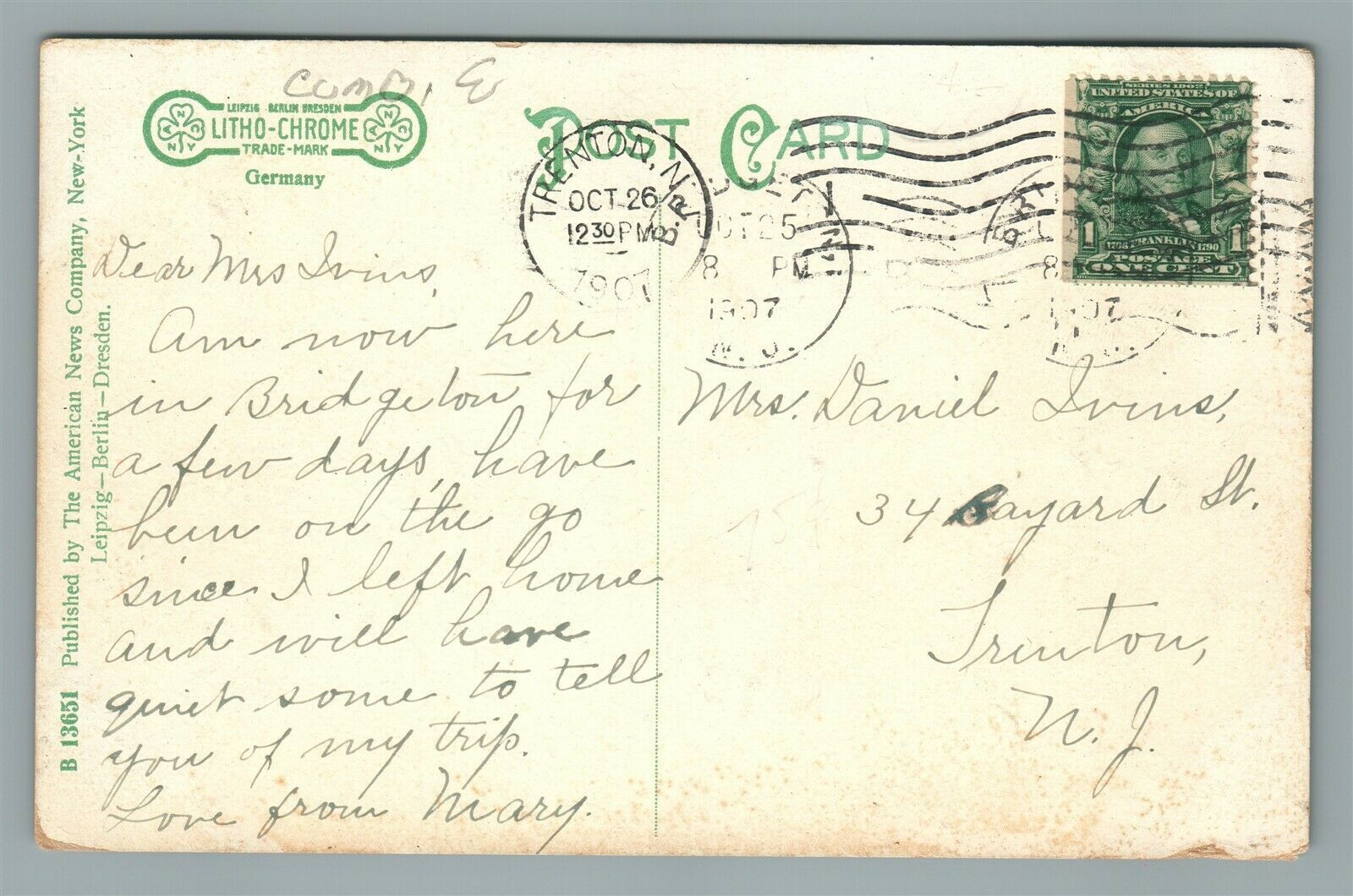 BRIDGETON NJ PEARL STREET ANTIQUE POSTCARD